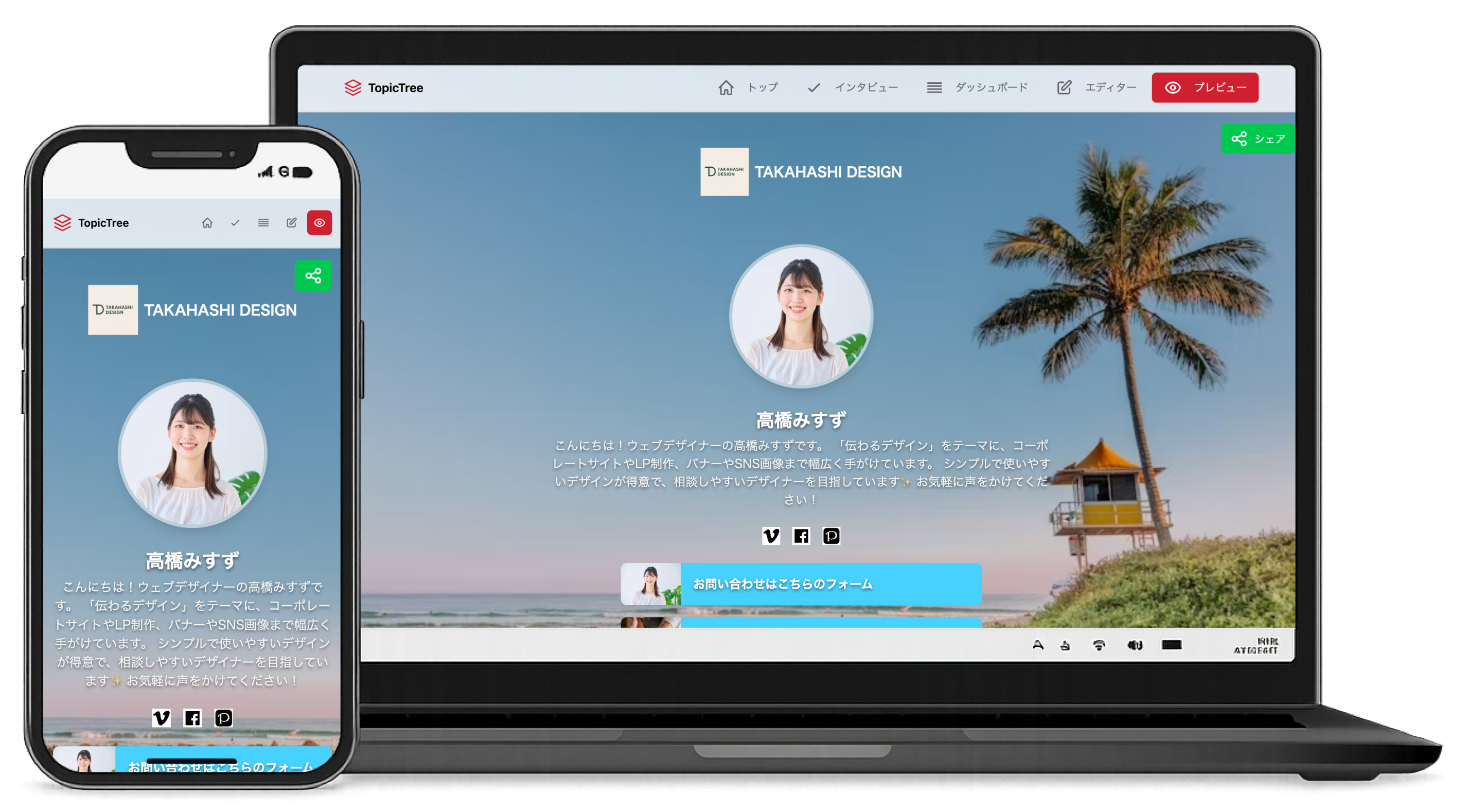 お好きなテキスト、画像、動画、音声を設定したリッチリンクを設置し、全ての起点を1ページに集約可能です。